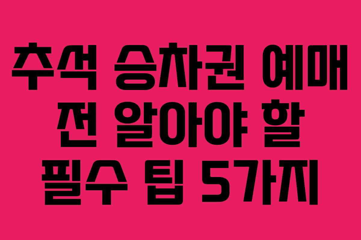 추석 연휴는 많은 사람들이 고향을 방문하기 위해 열차 승차권을 예매하는 시기입니다. 이러한 때에 몇 가지 유용한 팁을 알고 있으면 예매 성공 확률을 높일 수 있습니다. 2025년 추석에는 10월 2일부터 12일까지 운행되는 열차가 대상이며, 예매는 코레일 홈페이지와 모바일 전용 페이지를 통해 비대면으로만 가능합니다. 다음은 예매 전 꼭 알아야 할 5가지 꿀팁입니다.