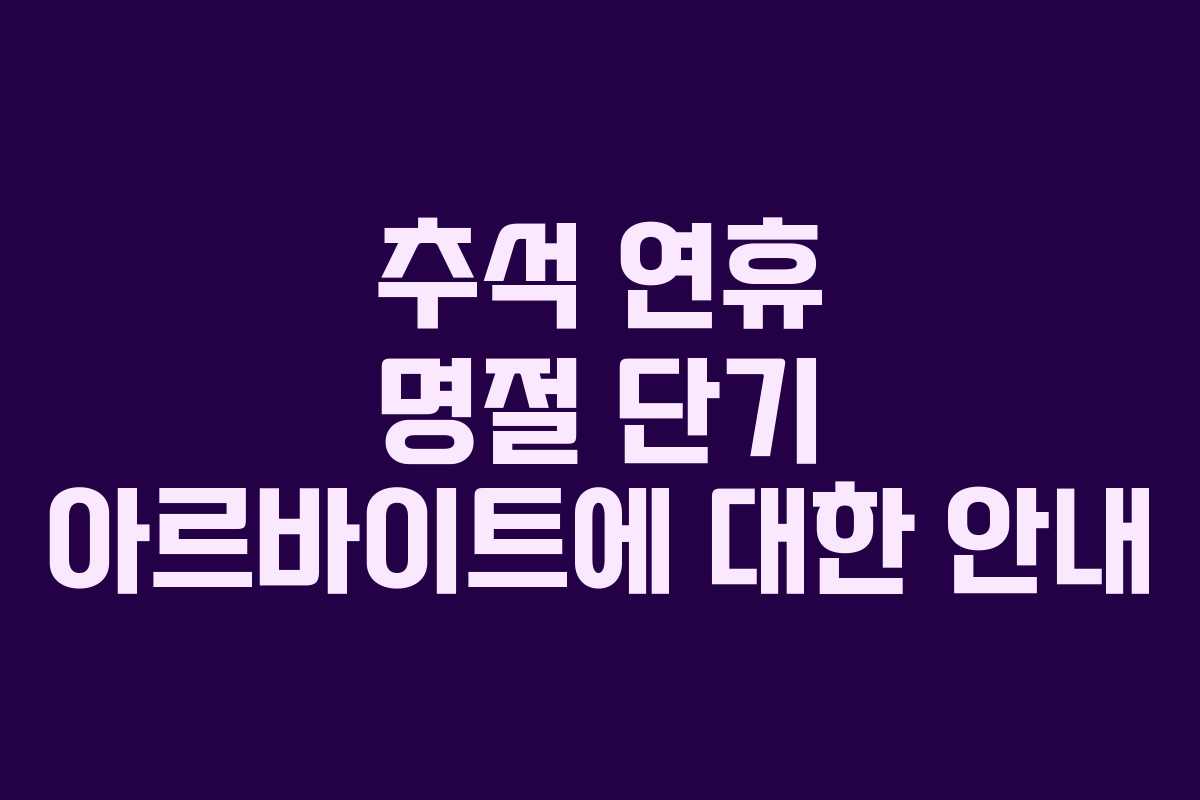 추석 연휴는 가족과의 소중한 시간을 보내는 특별한 시기입니다. 그러나 많은 사람들이 이 시기에 아르바이트를 선택하는 이유는 다양합니다. 이번 글에서는 추석 연휴 동안의 단기 아르바이트에 대한 궁금증을 해소하고, 주의해야 할 사항들을 정리해 보겠습니다.