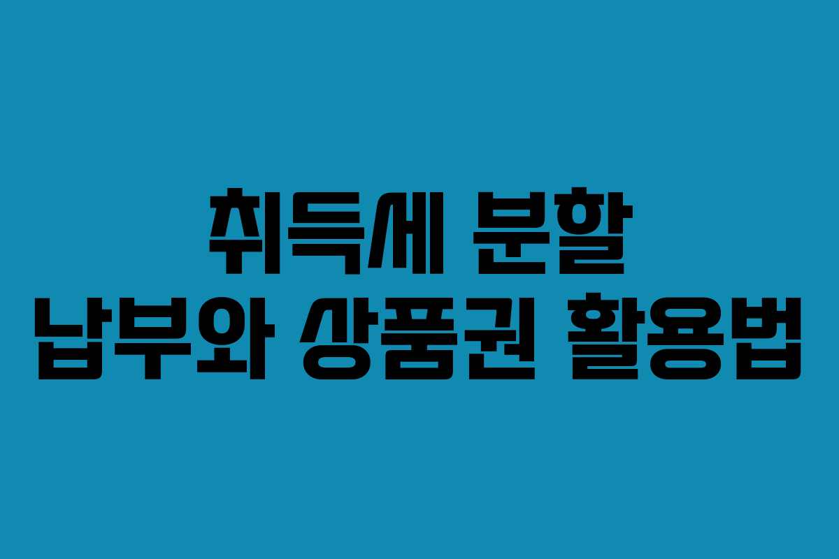 부동산 거래가 증가함에 따라 취득세 부담도 상당히 커졌습니다. 특히 전용 85㎡ 이하 주택의 경우, 6억 원 미만의 거래에서 취득세가 600만 원에 달합니다. 이러한 부담을 덜기 위해 취득세를 분할 납부할 수 있는 방법과 상품권을 활용하는 팁을 알아보겠습니다.