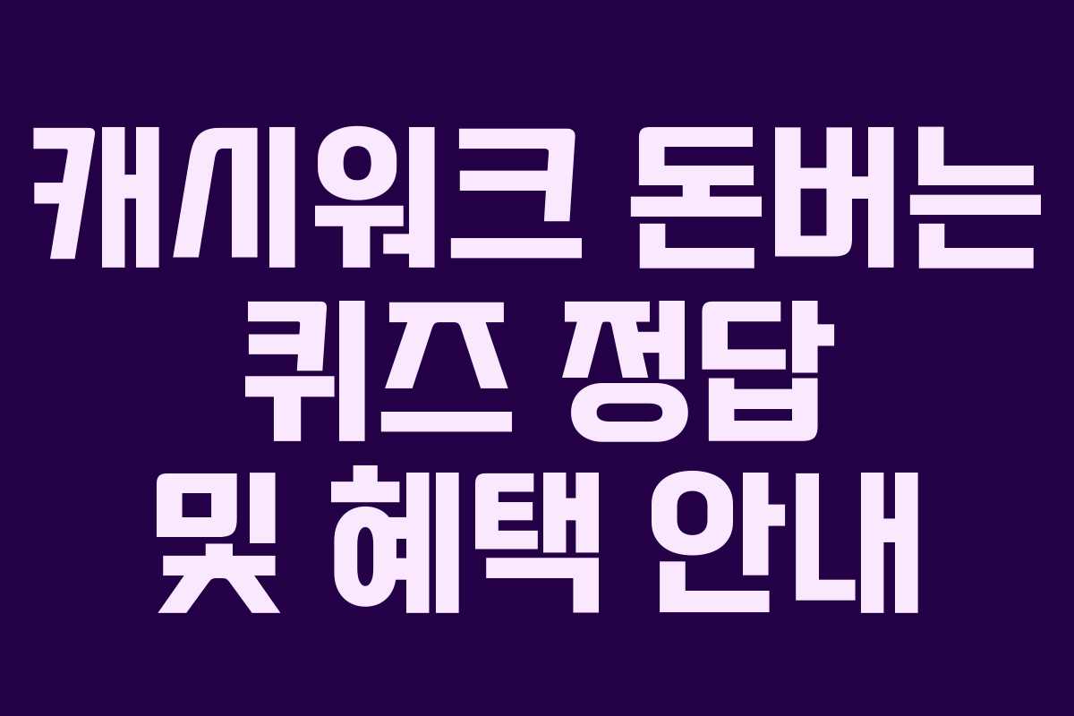 2024년 9월 10일 화요일, 캐시워크 돈버는 퀴즈의 정답과 함께 다양한 혜택 정보를 정리해 보았습니다. 이 글에서는 중요한 퀴즈 정답과 함께 9월 20일의 특별 혜택도 소개하니 참고하시기 바랍니다.