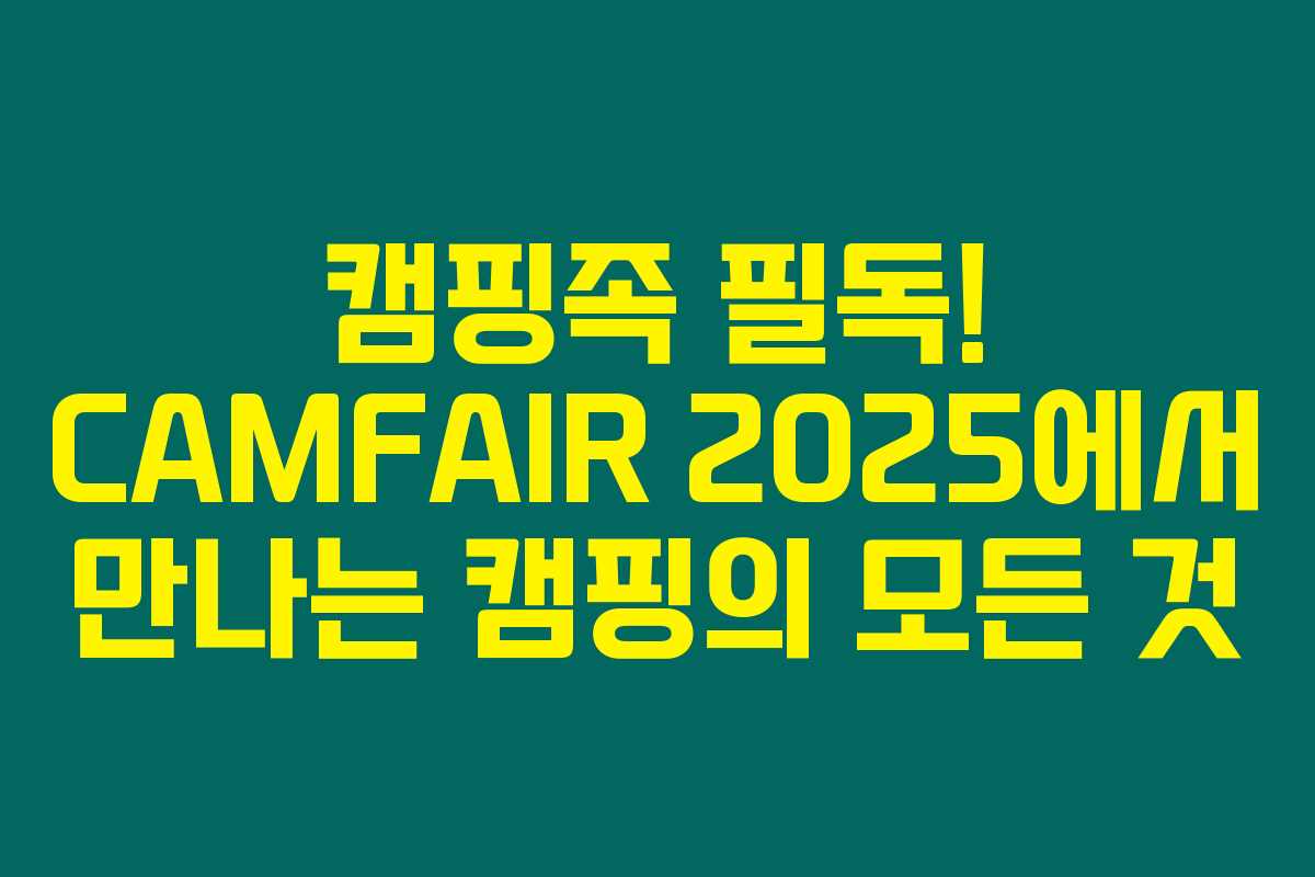 이렇게 CAMFAIR 2025에서 캠핑의 모든 것을 만날 수 있는 기회를 놓치지 마세요. 캠핑에 대해 더 알아보고 싶으신 분들이라면 이 행사에서 많은 정보와 제품을 얻으실 수 있답니다. 이제 사전등록을 통해 할인 혜택도 챙기고, 다양한 캠핑 문화를 경험해보세요!
