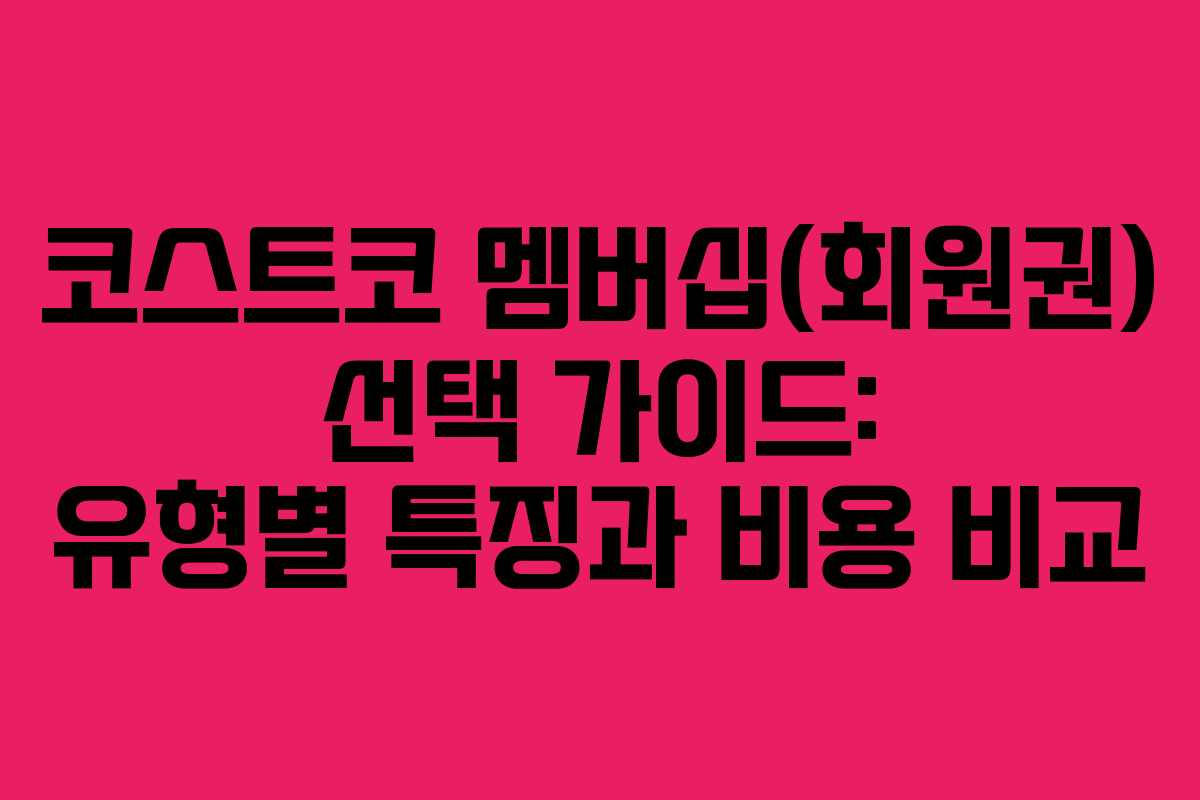 코스트코 멤버십(회원권) 선택 가이드: 유형별 특징과 비용 비교
