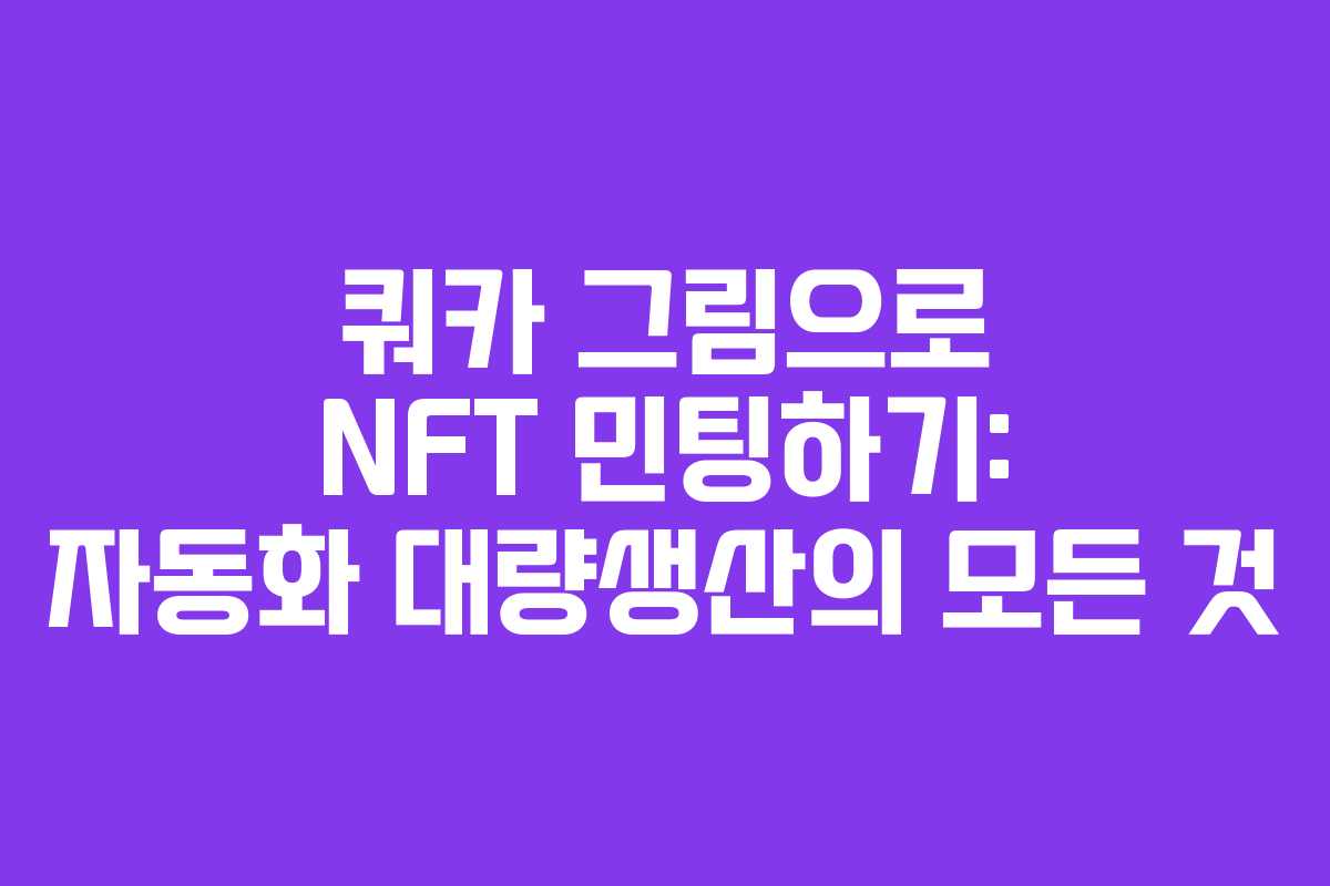 쿼카는 귀여운 외모로 많은 사람들의 사랑을 받는 동물입니다. 이번 포스팅에서는 쿼카 그림을 활용해 NFT를 민팅하는 과정과 대량 생산을 위한 자동화 작업에 대해 설명하겠습니다.