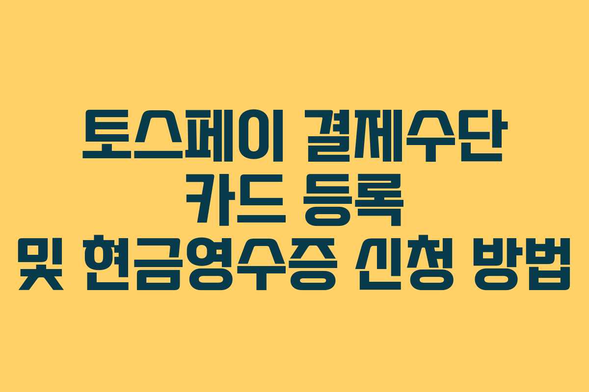 토스페이는 토스에서 제공하는 간편 결제 서비스로, 다양한 온라인 결제에 사용됩니다. 이번 글에서는 토스페이에서 카드 등록 및 현금영수증 신청하는 방법을 자세히 알아보겠습니다.