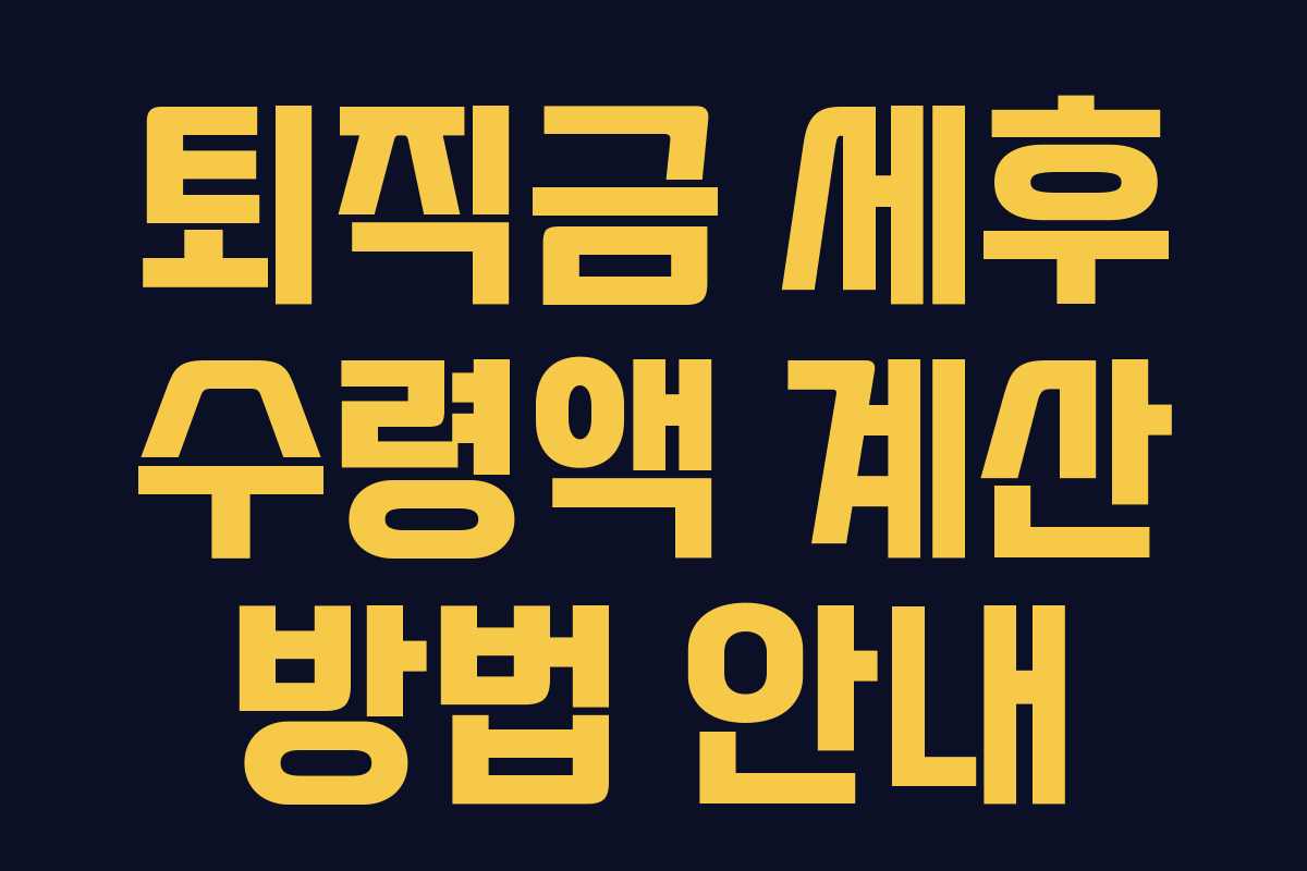 퇴직을 준비하는 직장인들에게 퇴직금의 세후 수령액을 정확히 파악하는 것은 매우 중요합니다. 하지만 이를 손쉽게 계산할 수 있는 도구는 아직 부족합니다. 따라서 퇴직금의 세전 금액에서 세후 금액으로의 흐름을 이해하고, 직접 계산할 수 있는 방법을 정리해 보겠습니다.