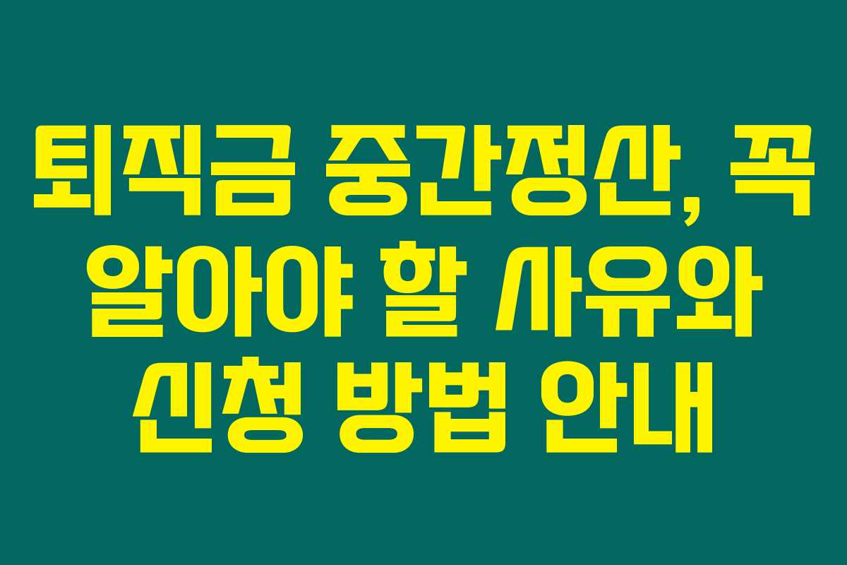 퇴직금이란 근로자가 퇴사 후 받는 급여를 말하며, 근로자가 일정한 조건을 충족해야만 중간정산이 가능해요. 어떤 사유로 중간정산을 요청할 수 있는지 알아보고, 실제로 신청하는 방법도 알아볼게요.