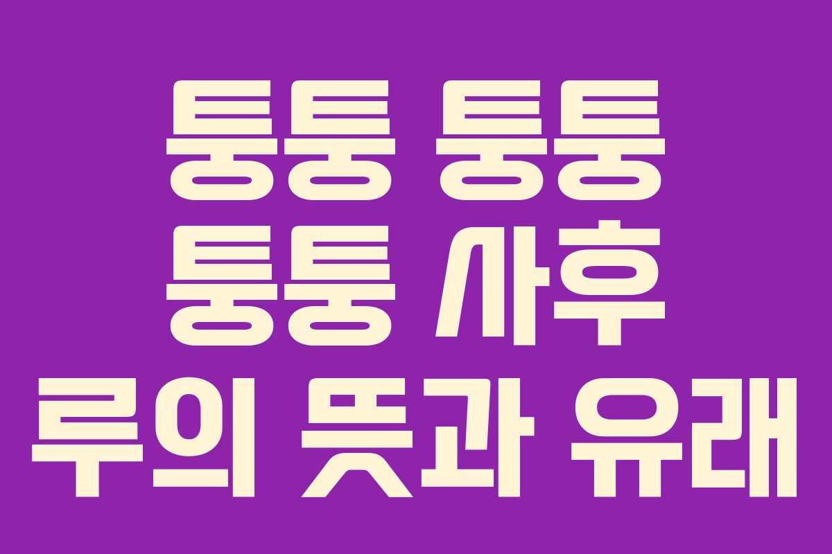 최근 인터넷에서 화제를 모으고 있는 ‘퉁퉁 퉁퉁 퉁퉁 사후 루’라는 문구는 특유의 리듬감과 발음으로 많은 사람들의 관심을 받고 있습니다. 이 글에서는 이 문구의 의미와 유래를 자세히 살펴보겠습니다.