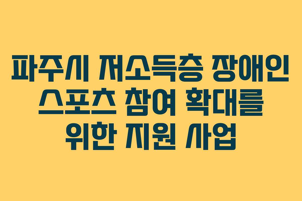 파주시는 저소득층 장애인의 스포츠 참여 기회를 확대하고 스포츠 복지를 실현하기 위한 노력을 기울이고 있습니다. 2020년에는 장애인스포츠강좌이용권 신청을 3월 23일부터 4월 12일까지 모집합니다.