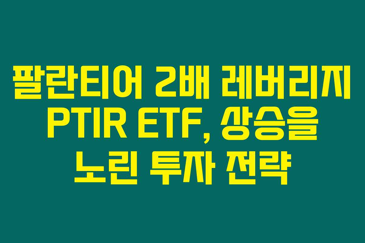 제가 직접 리서치한 바로는 팔란티어 2배 레버리지 PTIR ETF는 최근 투자자들에게 큰 인기를 끌고 있는 상품이에요. 이 ETF는 Palantir Technologies Inc.(PLTR)의 주가가 하루 동안 얼마나 변동하는지를 2배로 추종하기 때문에, 단기적인 상승을 노리는 투자자들에게 적합한 선택이라고 할 수 있습니다. 아래를 읽어보시면 PTIR ETF의 구조와 장단점에 대해 자세히 알 수 있습니다.