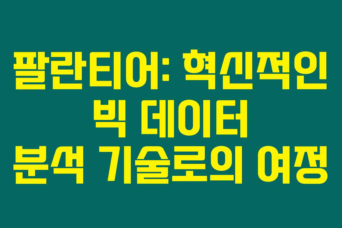 제가 직접 경험해본 결과로는 팔란티어(Palantir Technologies Inc.)는 빅 데이터와 인공지능(AI) 분야에서 매우 혁신적이고 신뢰할 수 있는 분석 플랫폼입니다. 이 기업이 제공하는 솔루션은 정부, 군사 기관, 그리고 다양한 민간 부문에서 데이터 기반 의사결정에 큰 기여를 하고 있습니다. 아래를 읽어보시면 팔란티어의 정의부터 기술적 우위, 그리고 미래 전망까지 폭넓은 정보를 찾을 수 있을 것입니다.