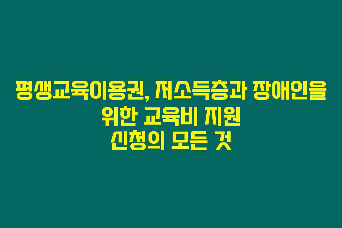이 정보를 바탕으로 평생교육이용권을 신청하셔서 더 많은 교육 기회를 활용해 보세요. 저소득층과 장애인이 평생교육의 자원을 통해 더 나은 삶을 누릴 수 있도록 함께 해주길 바랍니다!