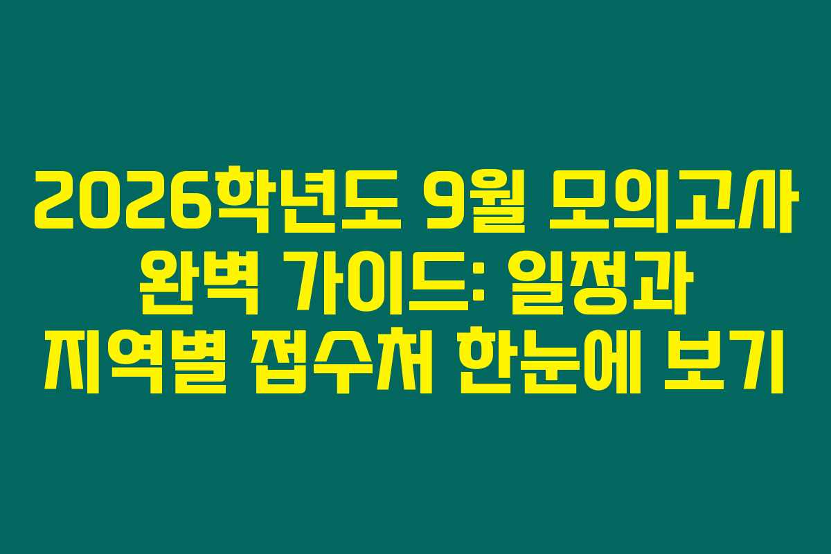 2026학년도 9월 모의고사를 준비하는 수험생이라면, 이 정보는 필수입니다. 시험 일정부터 지역별 접수처까지 모두 한눈에 확인할 수 있는 완벽 가이드를 제공합니다. 수능 직전 정말 중요한 이 시기에 놓치지 말아야 할 점들을 체크해보세요!