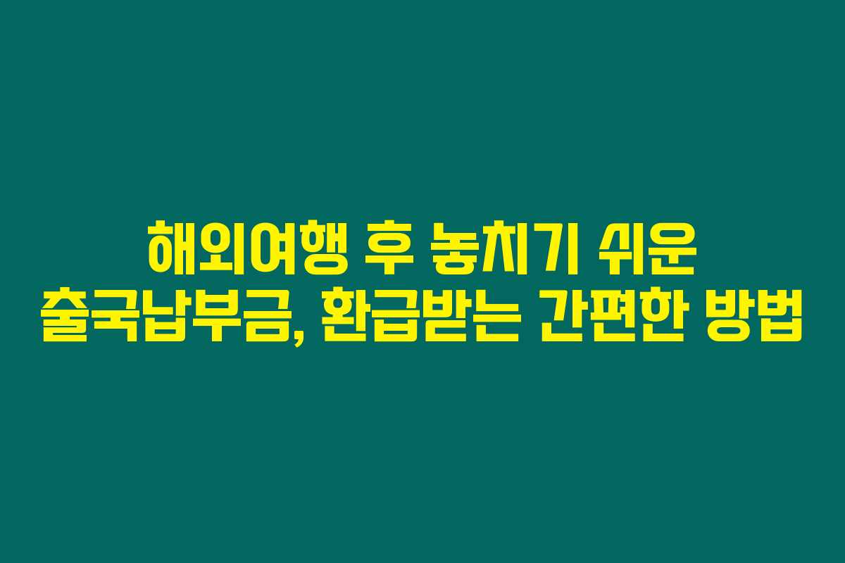 제가 리서치한 바로는, 해외여행 후 많은 사람들이 주목하지 않는 세금 환급이 있다는 사실입니다. 바로 ‘출국납부금환급서비스’를 통해 환급받을 수 있는 돈이죠! 최대 1만 원까지 환급이 가능하니, 비용을 아끼고 싶으신 분들은 아래를 읽어보시면 꼭 확인해보세요.