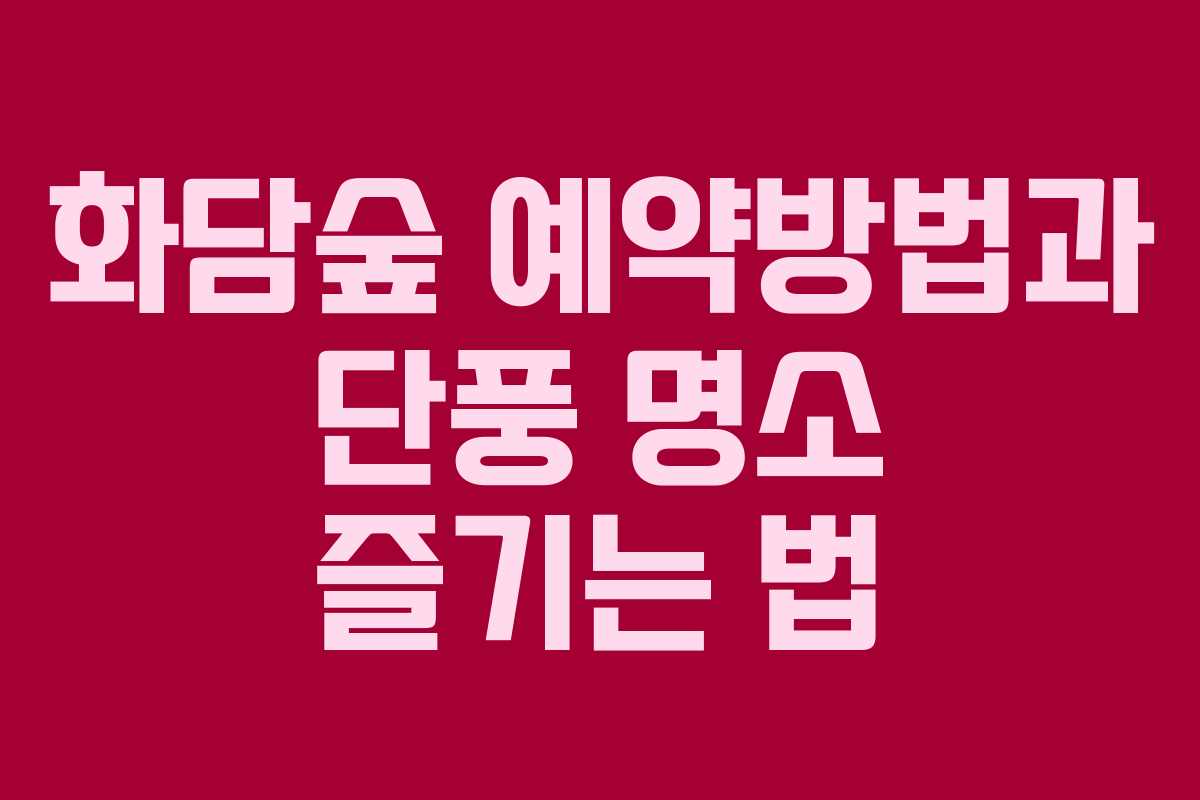 화담숲은 아름다운 자연 속에서 단풍을 즐기고 싶은 모든 이들에게 완벽한 장소입니다. 가을 성수기에는 사전 예약과 모노레일 예약을 통해 쾌적한 관람을 즐길 수 있으니, 다양한 단풍과 함께 힐링의 시간을 보내보세요.