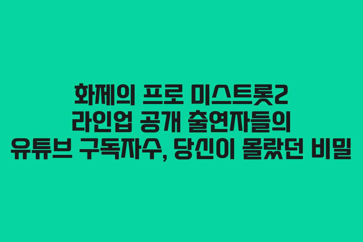 화제의 프로 미스트롯2 라인업 공개 출연자들의 유튜브 구독자수, 당신이 몰랐던 비밀