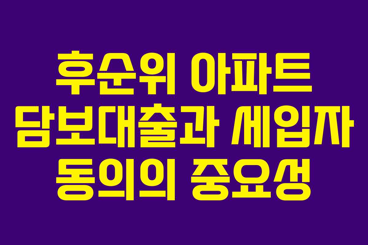아니요, 후순위 아파트 담보대출 세입자 동의가 필수입니다. 동의 없는 대출은 법적 문제를 초래할 수 있습니다.