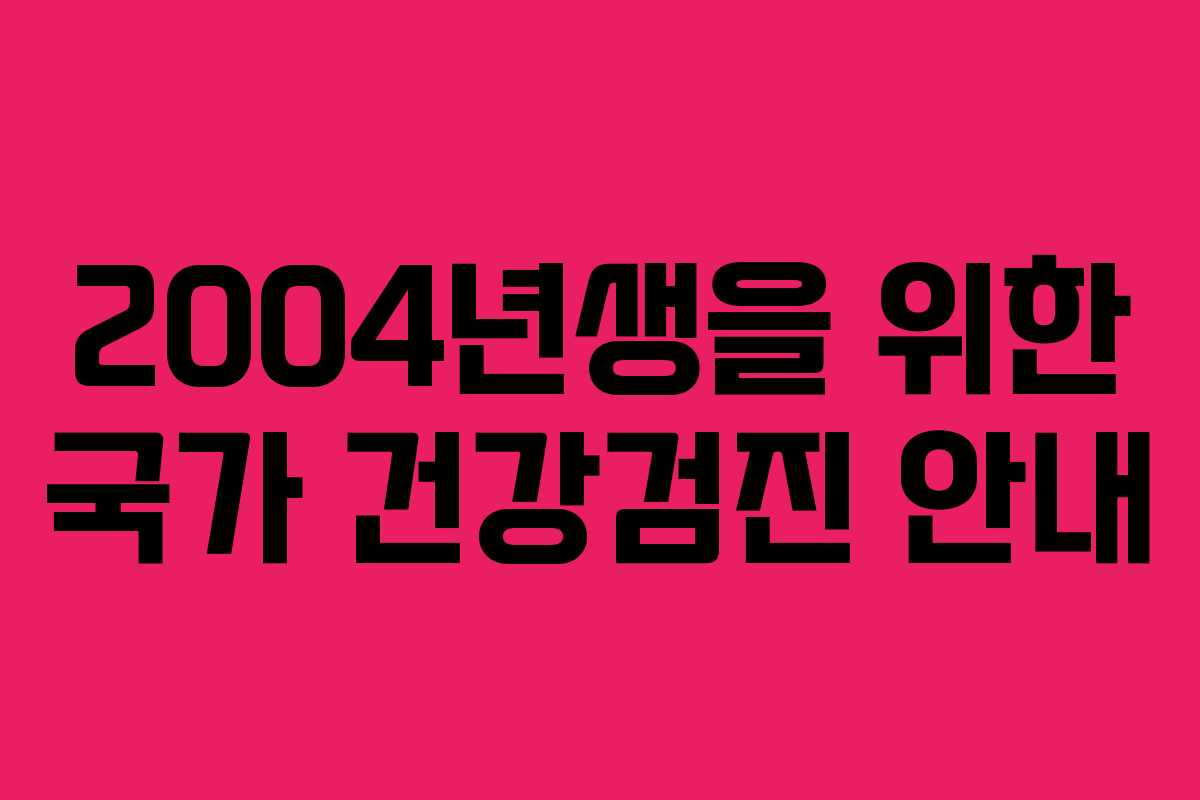 2004년생이라면 올해 만 20세가 되어 국가 건강검진의 대상에 해당합니다. 건강검진은 건강을 유지하고 질병을 예방하는 중요한 과정이므로, 이 기회를 놓치지 않도록 하세요.