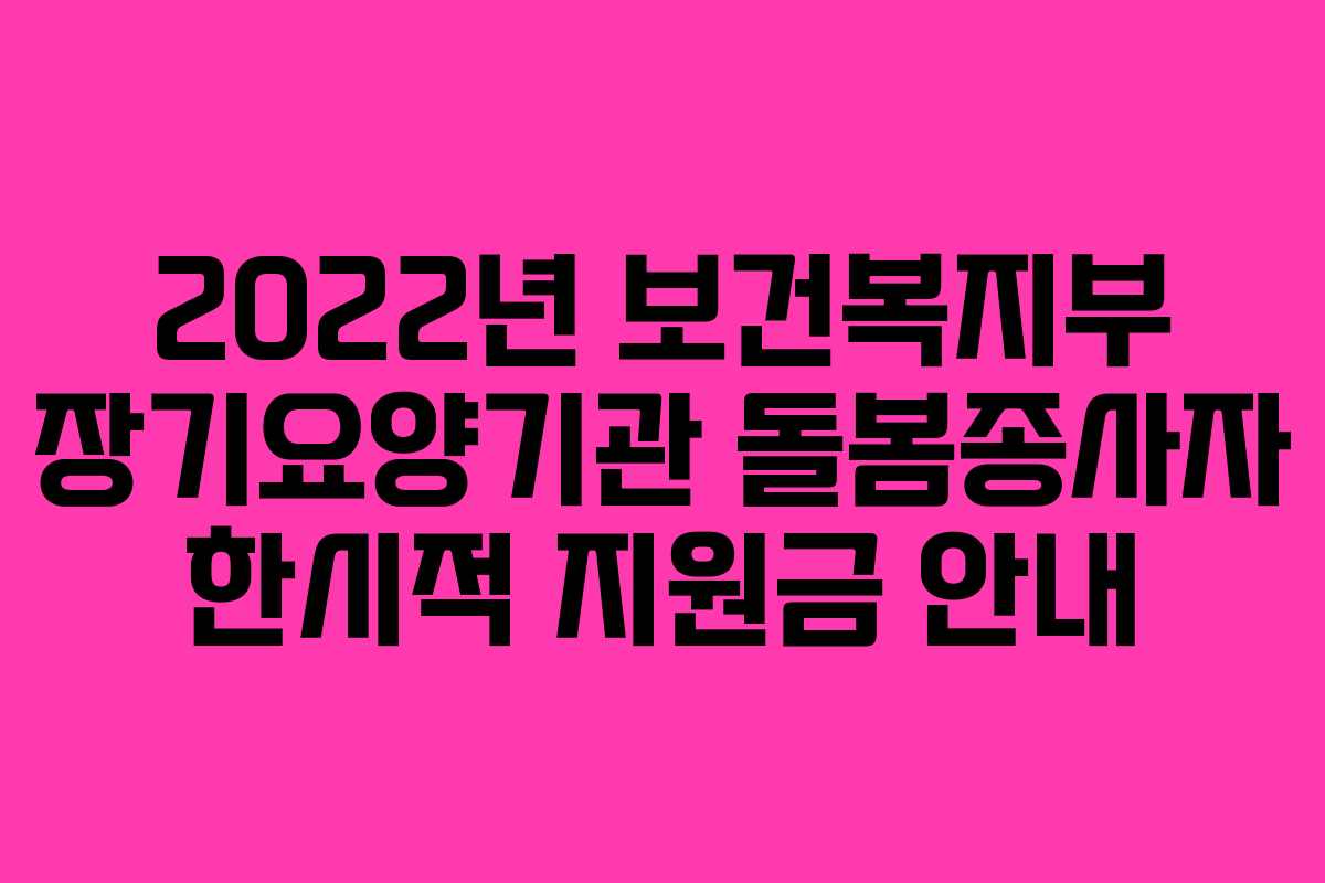 2022년 보건복지부는 코로나19 방역을 강화하고 감염 취약 계층을 보호하기 위해 장기요양기관 돌봄종사자를 대상으로 한 한시적 지원금을 지급하기로 결정했습니다. 이번 지원금은 감염 관리와 어르신에 대한 돌봄 서비스를 제공하는 이들의 노고를 격려하고 처우 개선을 도모하기 위한 것입니다.