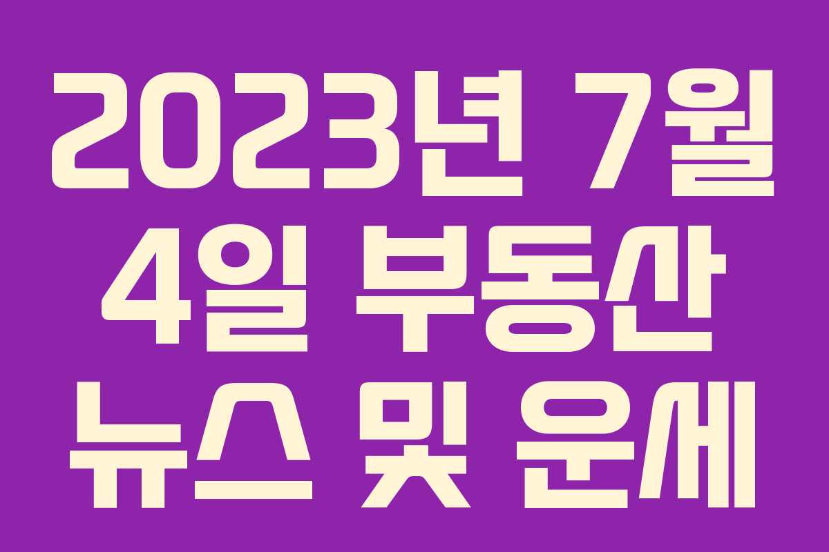 2023년 7월 4일의 부동산 뉴스와 운세에 대한 정보를 정리해 보았습니다. 오늘의 운세와 주요 부동산 이슈를 살펴보겠습니다.