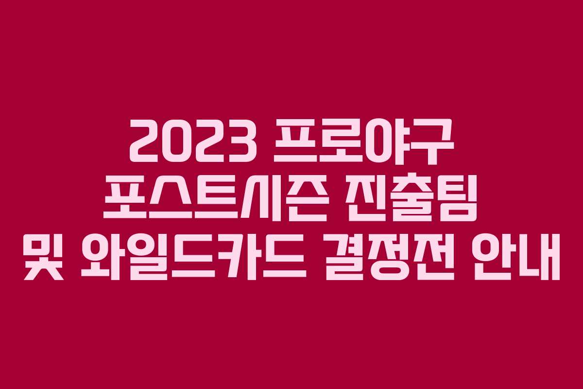 2023 프로야구 포스트시즌 진출팀 및 와일드카드 결정전 안내
