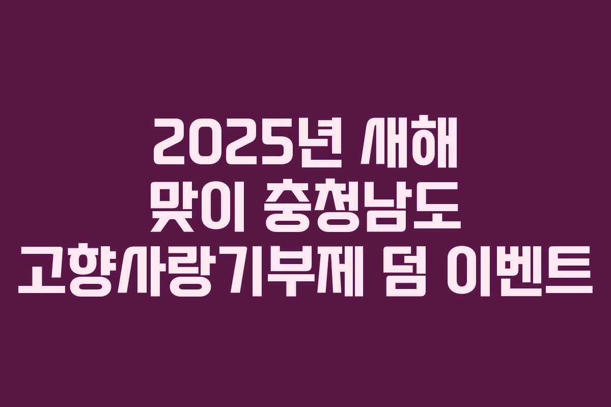 2025년 2월 한 달간 충청남도에서 진행하는 고향사랑기부제 덤 이벤트는 기부자에게 추가 증정품을 제공하여 기부 문화 확산을 도모합니다. 이번 이벤트는 충청남도의 경제 발전과 지역 활성화를 위한 중요한 기회로, 많은 참여가 기대됩니다.