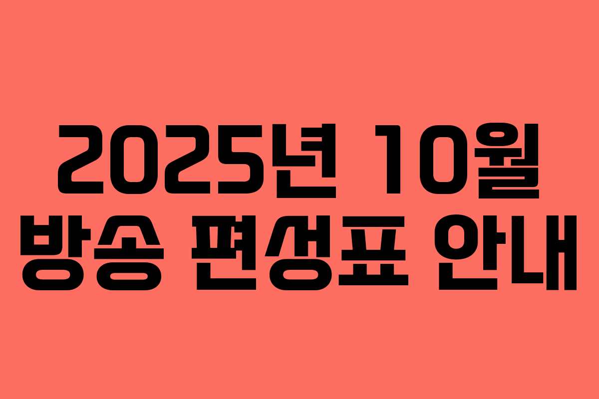 2025년 10월 한 달간 방송되는 다양한 프로그램과 스포츠 중계 일정에 대한 안내입니다. 이번 달에는 예능 프로그램과 재방송 편성, 스포츠 중계 일정을 한눈에 확인할 수 있습니다.