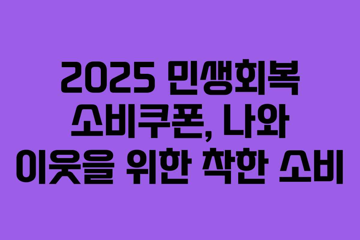 민생회복 소비쿠폰은 지역 경제를 활성화하고 시민들에게 실질적인 도움을 주기 위한 중요한 정책입니다. 여러분의 착한 소비가 이웃과 지역 사회를 더욱 풍요롭게 만드는 데 기여할 것입니다.