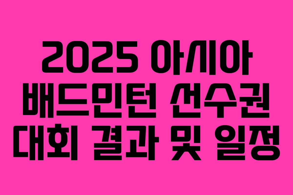 2025 아시아 배드민턴 선수권 대회 결과 및 일정