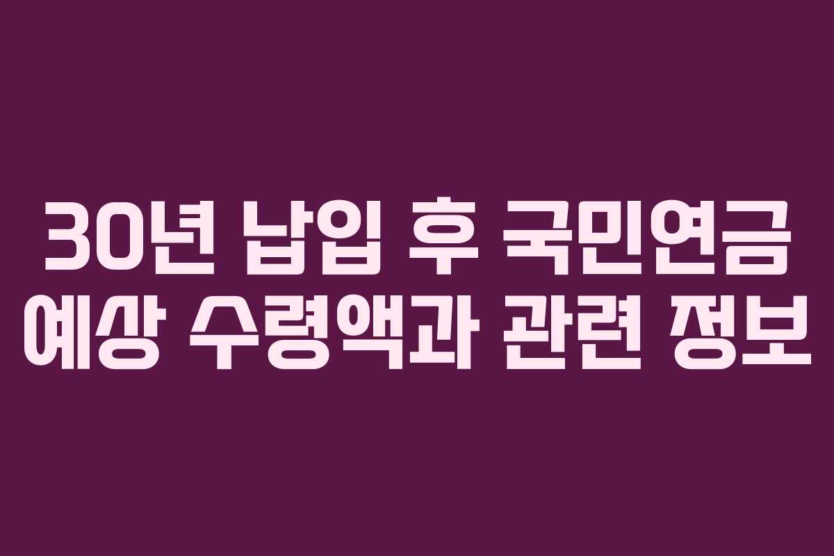 30년 동안 국민연금을 납입했을 경우의 예상 수령액은 개인의 월평균 소득에 따라 달라집니다. 예를 들어, 월평균 소득이 300만 원이라면, 예상 월 수령액은 약 100만 원 내외로 산정됩니다. 국민연금 공단의 연금 예상 계산기를 통해 보다 정확한 수치를 확인할 수 있습니다.