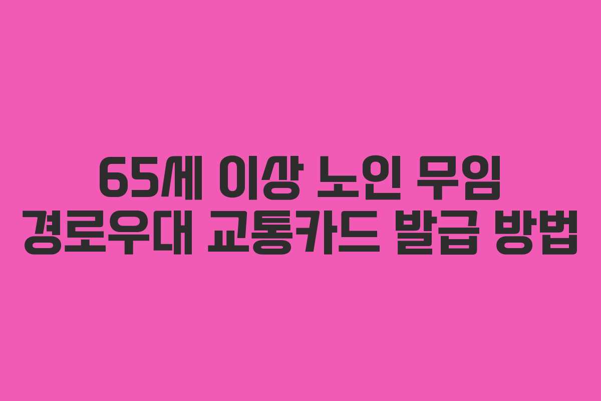 위의 정보를 참고하여 65세 이상의 어르신들이 무임 경로우대 교통카드를 쉽게 발급받으실 수 있기를 바랍니다. 이동의 자유를 누리며 편안한 일상을 즐기세요.