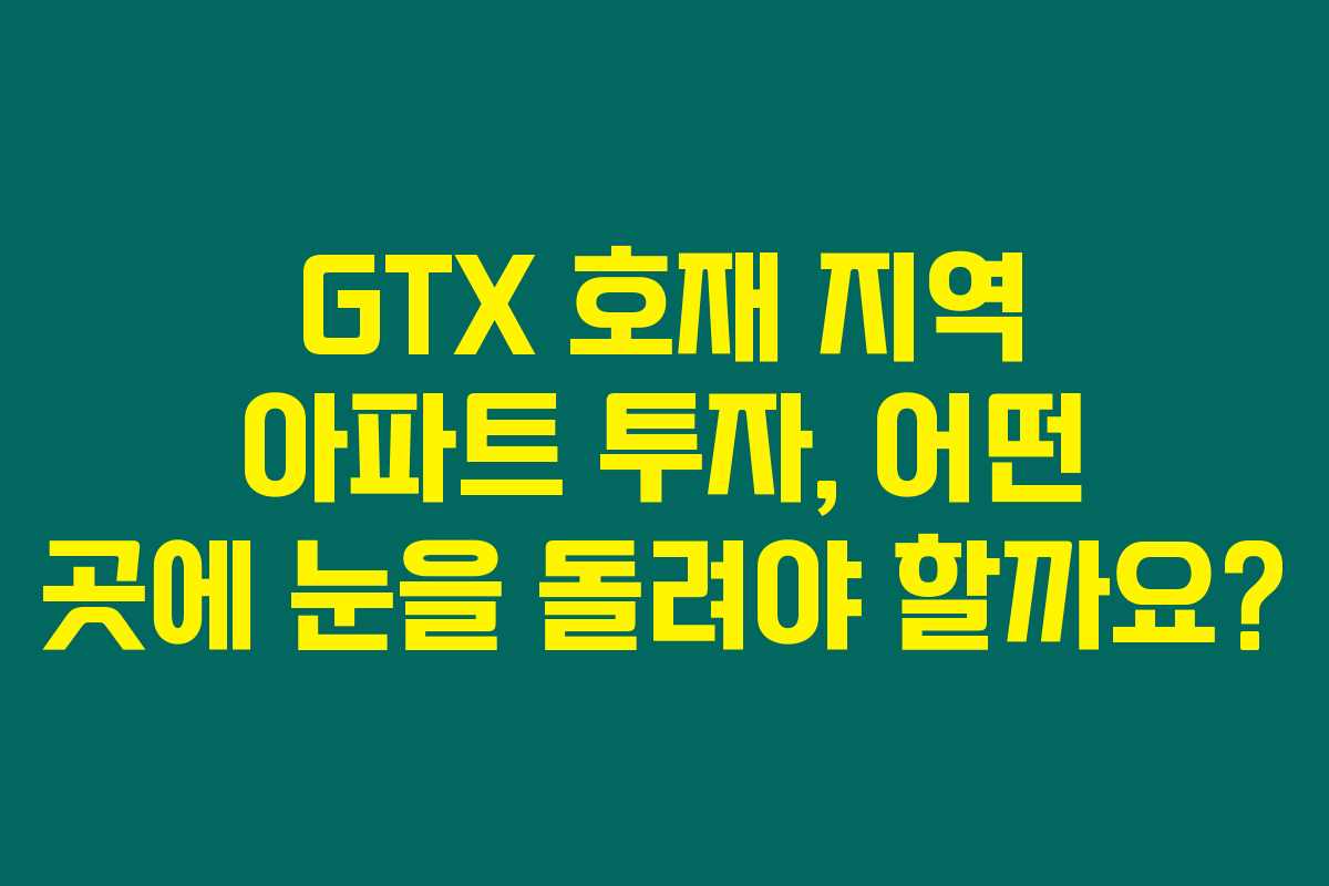 - 3. GTX 호재 지역 아파트 투자 시 유의사항