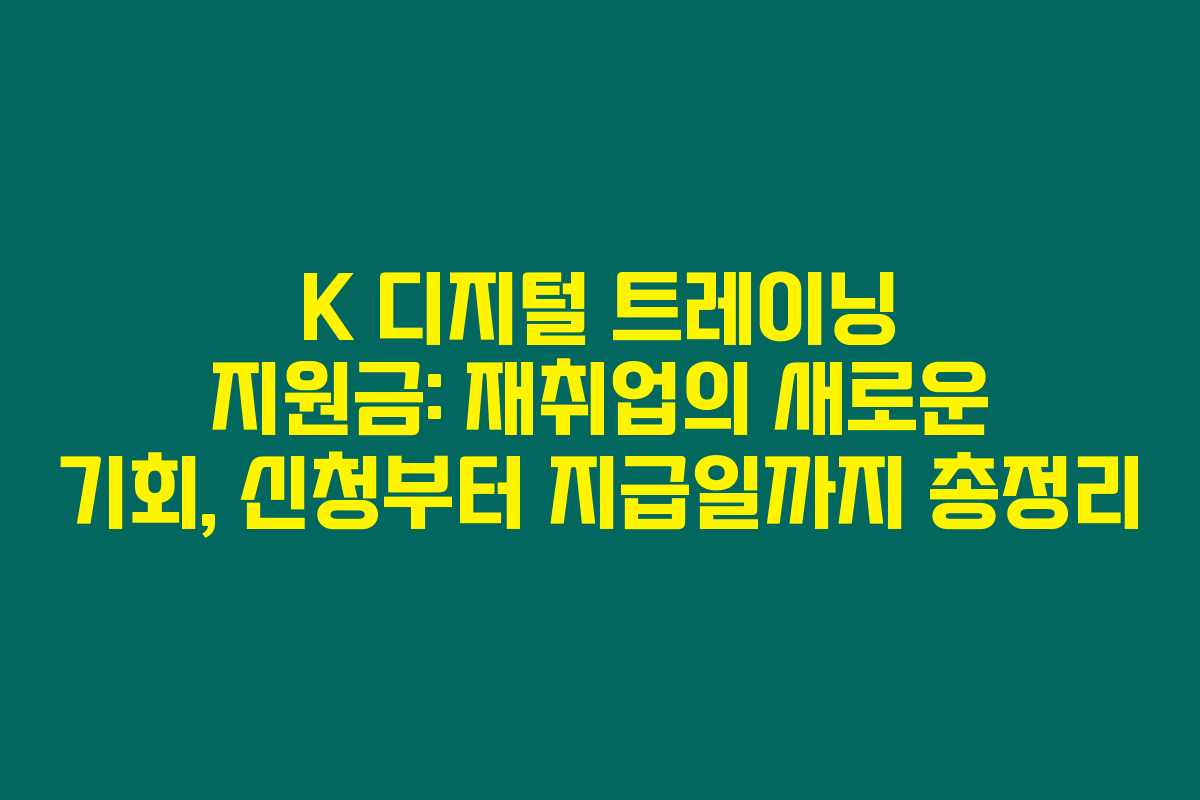 제가 직접 경험해본 결과로는, 디지털 시대에 발맞춰 정부에서 제공하는 K 디지털 트레이닝 지원금은 구직자 및 청년층에게 꼭 필요한 제도입니다. 이 지원금은 디지털 기술을 배우고 취업할 수 있도록 돕기 위해 설계되었습니다. 아래를 읽어보시면, 이 지원금의 신청 방법과 훈련장려금 지급일에 대한 중요한 정보들을 한눈에 확인하실 수 있습니다.