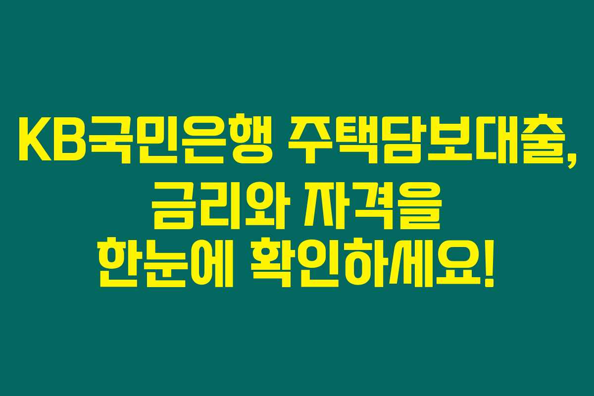 제가 직접 경험해본 결과로는, 주택담보대출을 고민하는 많은 분들이 금리와 자격 요건을 궁금해 하시더라고요. 특히 KB국민은행의 주택담보대출 상품은 다양한 혜택과 조건을 갖추고 있어 많은 이들의 관심을 받고 있어요. 아래를 읽어보시면 KB국민은행 주택담보대출의 금리 및 자격 요건에 대해 자세히 안내해드릴게요.