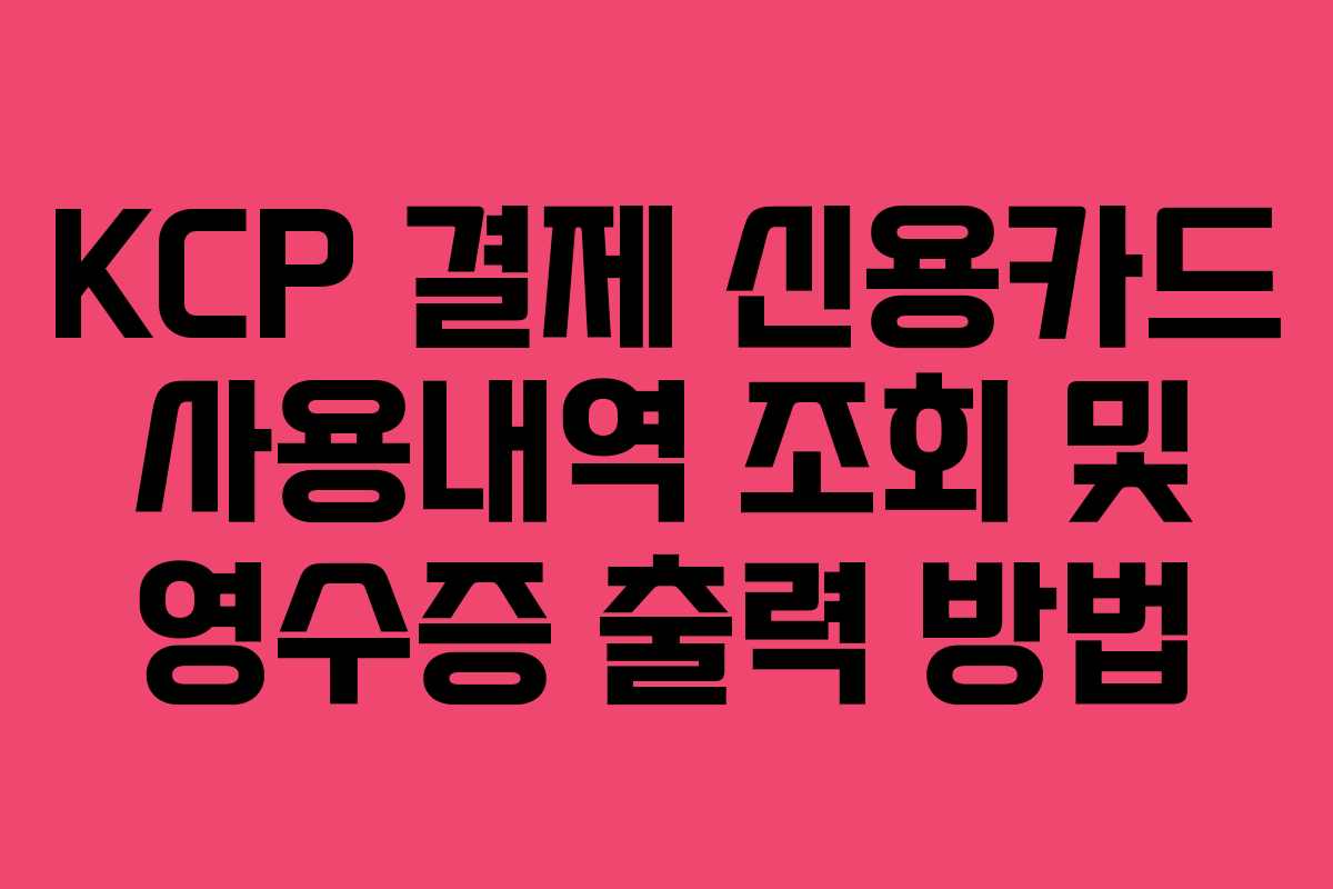 KCP 결제 후 신용카드 사용 내역을 확인하는 방법은 많은 사용자들에게 필요한 정보입니다. 특히, KCP라는 용어가 포함된 결제 내역에서 실제 사용처를 파악하는 것이 어려운 경우가 많습니다. 이번 글에서는 KCP 결제 내역을 조회하고 영수증을 출력하는 방법에 대해 자세히 설명하겠습니다.