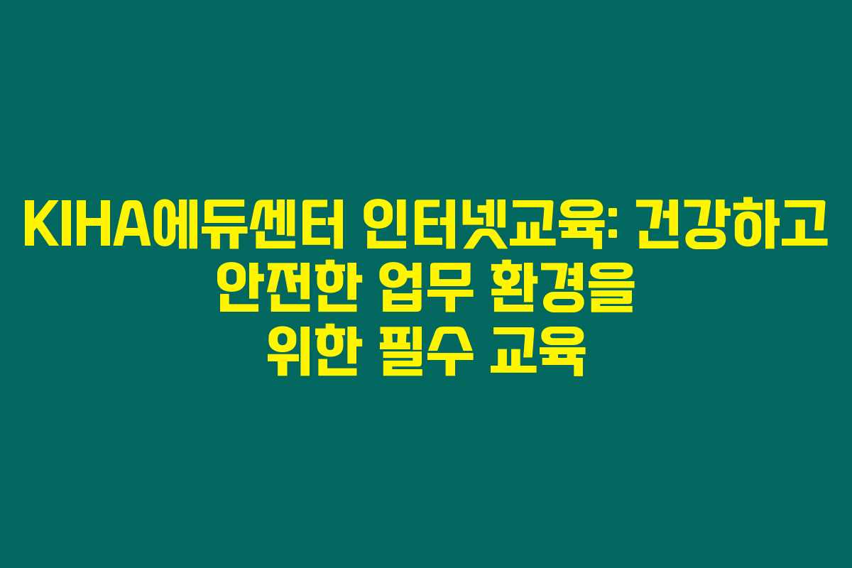 KIHA에듀센터의 인터넷교육 프로그램은 직장 내 안전 및 건강을 강화하는 데 매우 중요한 역할을 합니다. 다양한 교육 과정과 유연한 수강 방법 덕분에, 자신의 스케줄에 맞춰 쉽게 학습할 수 있는 기회를 제공합니다. 앞으로도 지속적인 교육과 학습을 통해 안전한 근무 환경을 만들어가는 데 동참해야겠지요. 교육에 더 관심이 있다면 KIHA에듀센터의 다양한 프로그램을 확인해보세요!