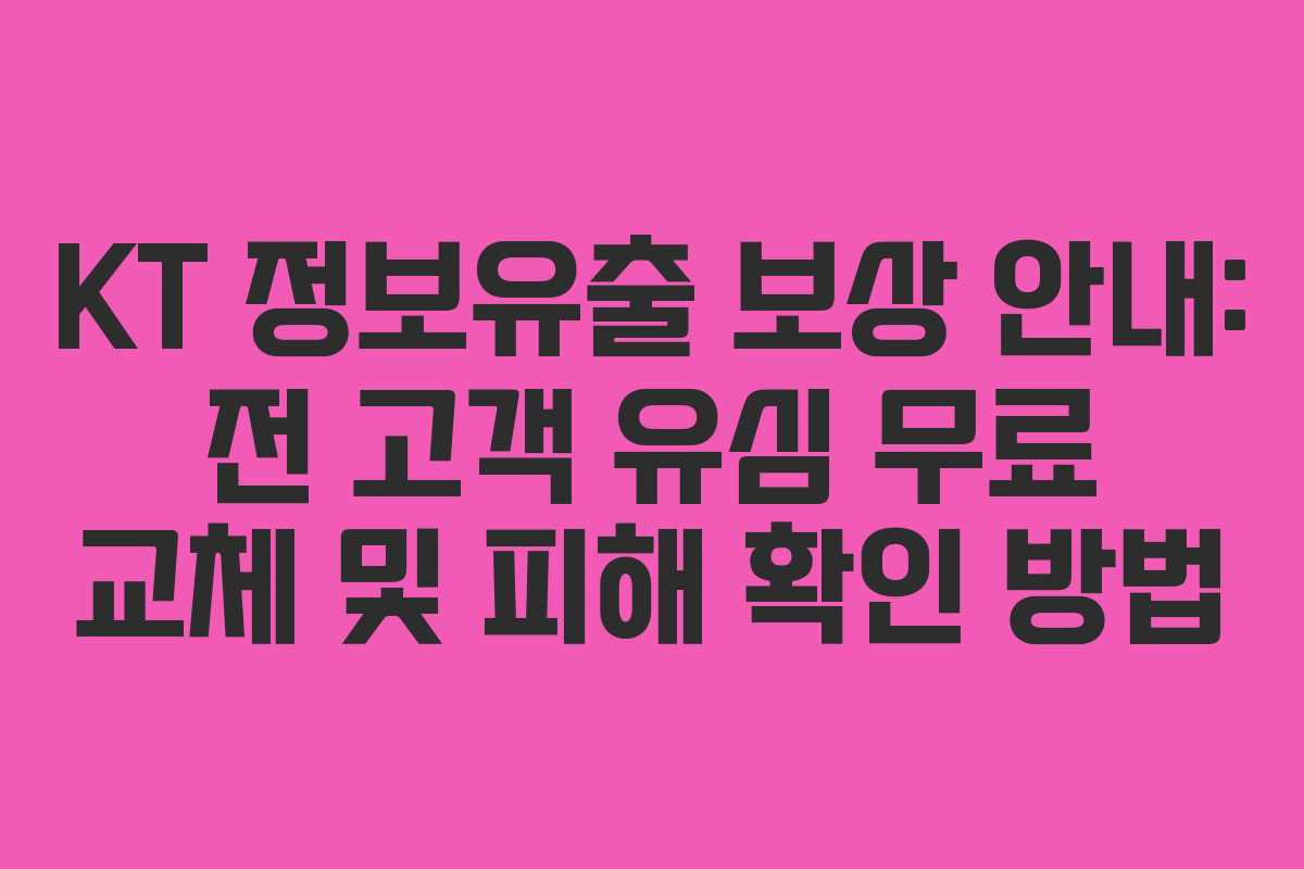 KT는 피해 사실이 확인된 고객에게 문자 및 이메일로 별도로 안내할 계획입니다. 또한, KT닷컴의 ‘내 정보 관리 → 보안 알림 내역’ 메뉴에서도 피해 여부를 확인할 수 있습니다. KT망을 이용하는 알뜰폰 고객은 자사 고객센터를 통해 교체 일정과 절차에 대한 안내를 받을 수 있습니다.