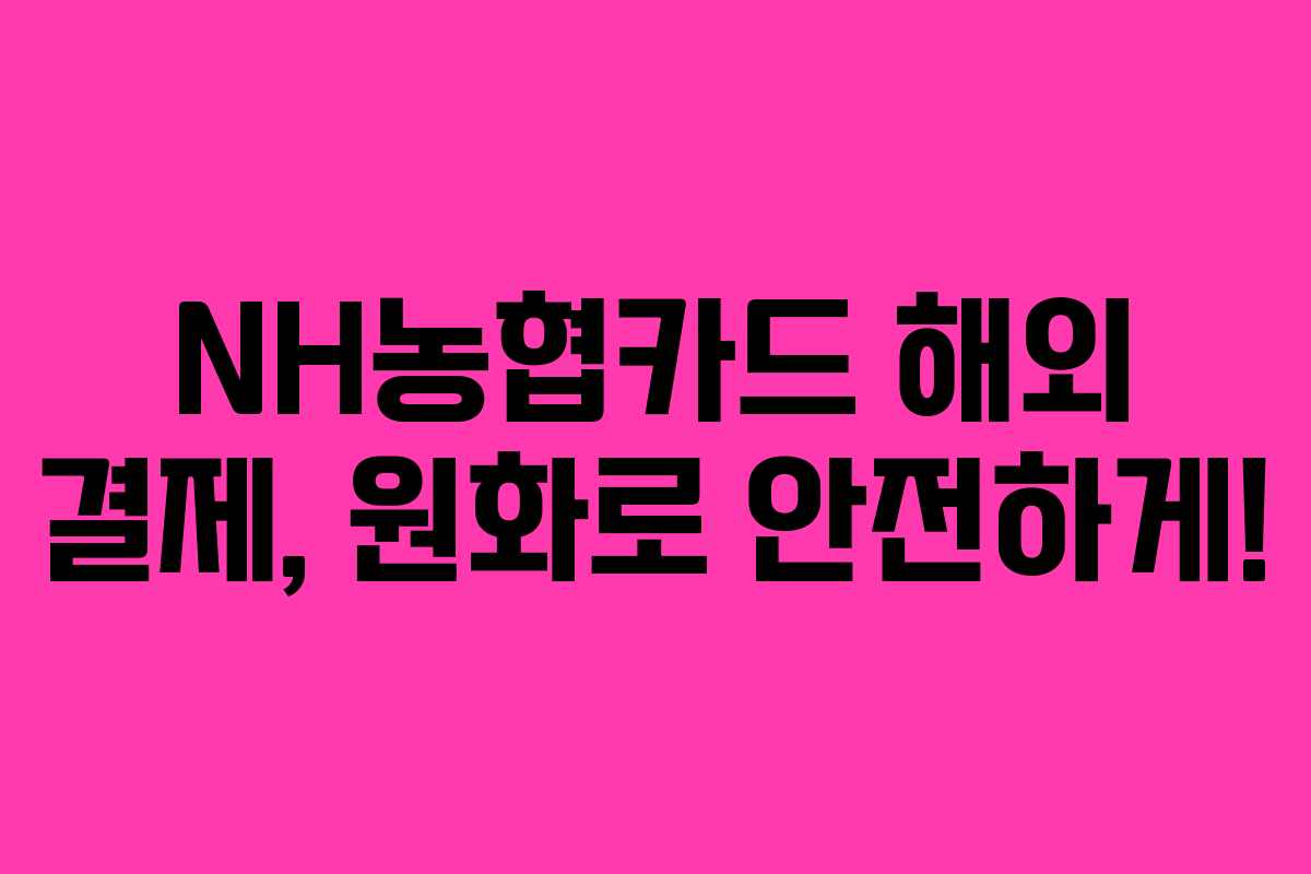 해외여행이나 온라인 쇼핑을 위해 카드를 사용할 때, 원화로 결제하는 것이 안전하고 편리할 수 있습니다. NH농협카드는 해외 원화 결제 차단 기능을 통해 고객이 불필요한 외화 결제를 방지하고 안전하게 결제할 수 있도록 돕고 있습니다. 이번 글에서는 이 기능의 필요성과 신청 방법, 주의 사항 등을 자세히 알아보겠습니다.