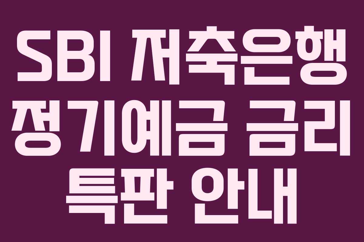 최근 재테크를 고민하는 분들이 많아지면서 저축의 중요성이 더욱 부각되고 있습니다. 특히 금리가 높은 금융 상품을 찾는 것은 매우 중요한 요소입니다. 오늘은 SBI 저축은행의 정기예금 금리 특판에 대해 알아보겠습니다.